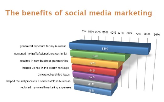 פרמטר נוסף שנבדק היה המניעים שלשמם פועלים עסקים ברשתות החברתיות או במילים פשוטות מה הם מחפשים שם. התועלת המרכזית שעניינה את כל אנשי השיווק היא כמובן לקבל חשיפה- 85% מאנשי השיווק העידו שהמאמצים העיקריים שלהם נועדו ליצר חשיפה לעסק.שיפור טרפיק היוותה מטרה שנייה בגודלה ולאחריה – בניית קשרים חדשים. מסתבר שיותר אנשי שיווק מצליחים להפיק מרשת חברתית יתרונות שכן 50% מהמשתמשים העידו כי הם משיגים מהן לידים איכותיים.